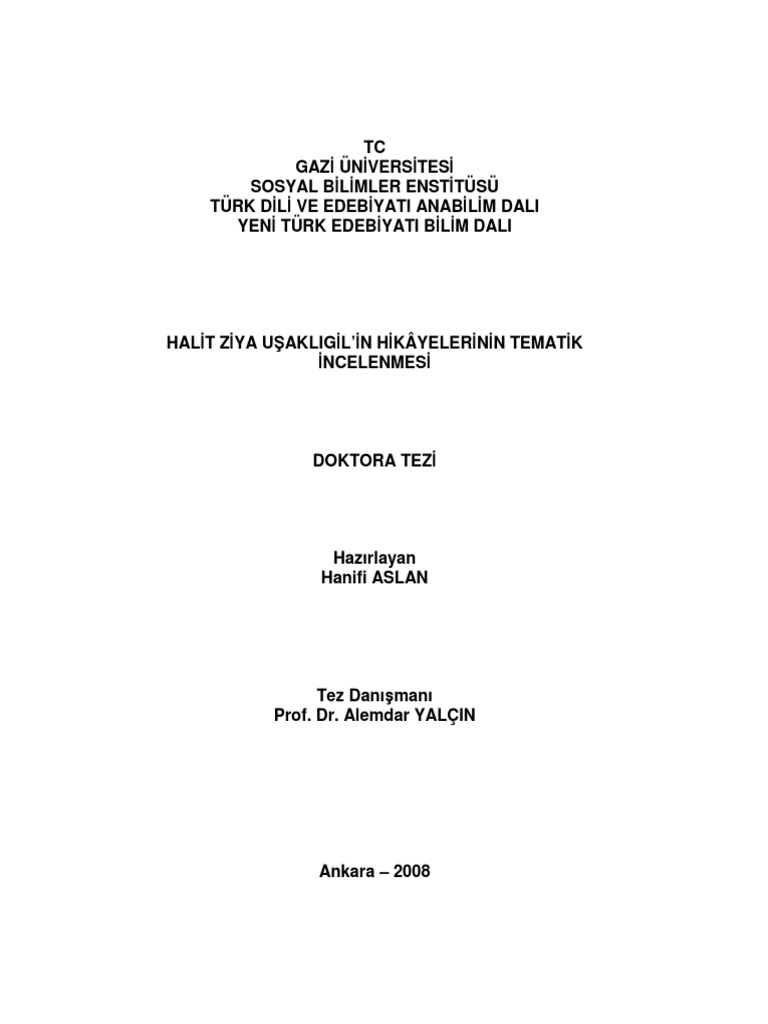 Halit Ziya Uakligil In Hikayelerinin Tematik Incelenmesi Tematic Analysis Of Halit Ziya Uakligil S Stories